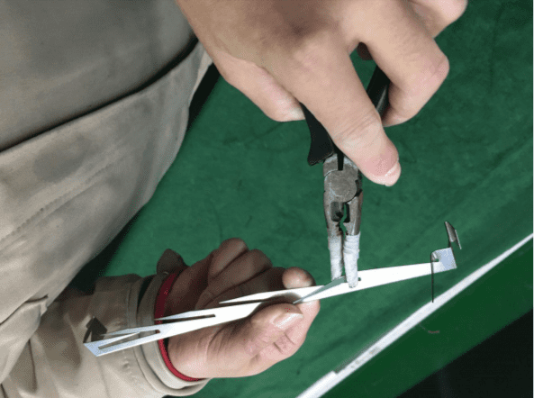 2. Using the pliers, fold the stakes upwards as shown in the photos below. Please take care with this process to avoid poking yourself.