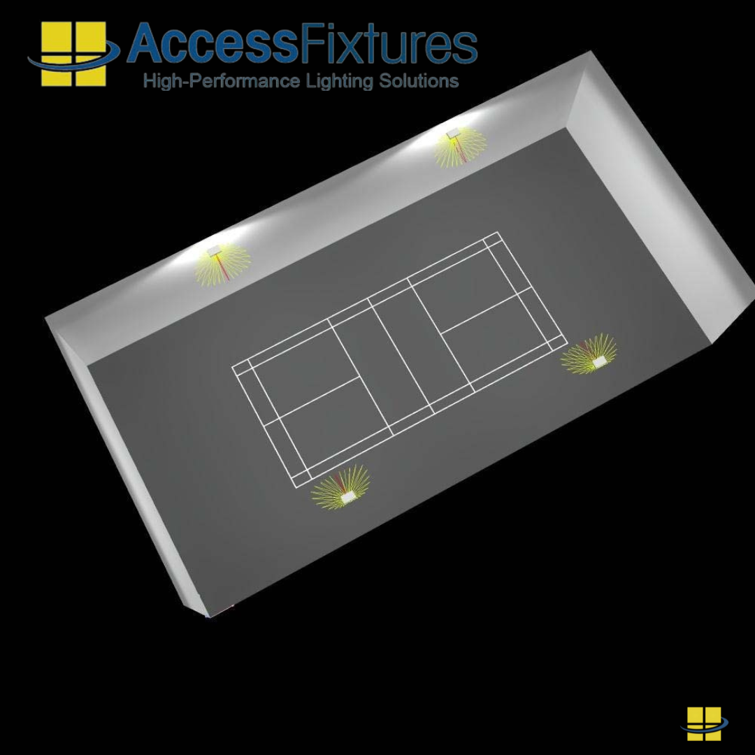 Pre-engineered lighting layouts or custom photometric studies are strongly recommended to achieve safe, uniform, and high-performance illumination. Access Fixtures lighting specialists can help you design an optimized indoor pickleball lighting solution tailored to your facility’s layout and level of play.