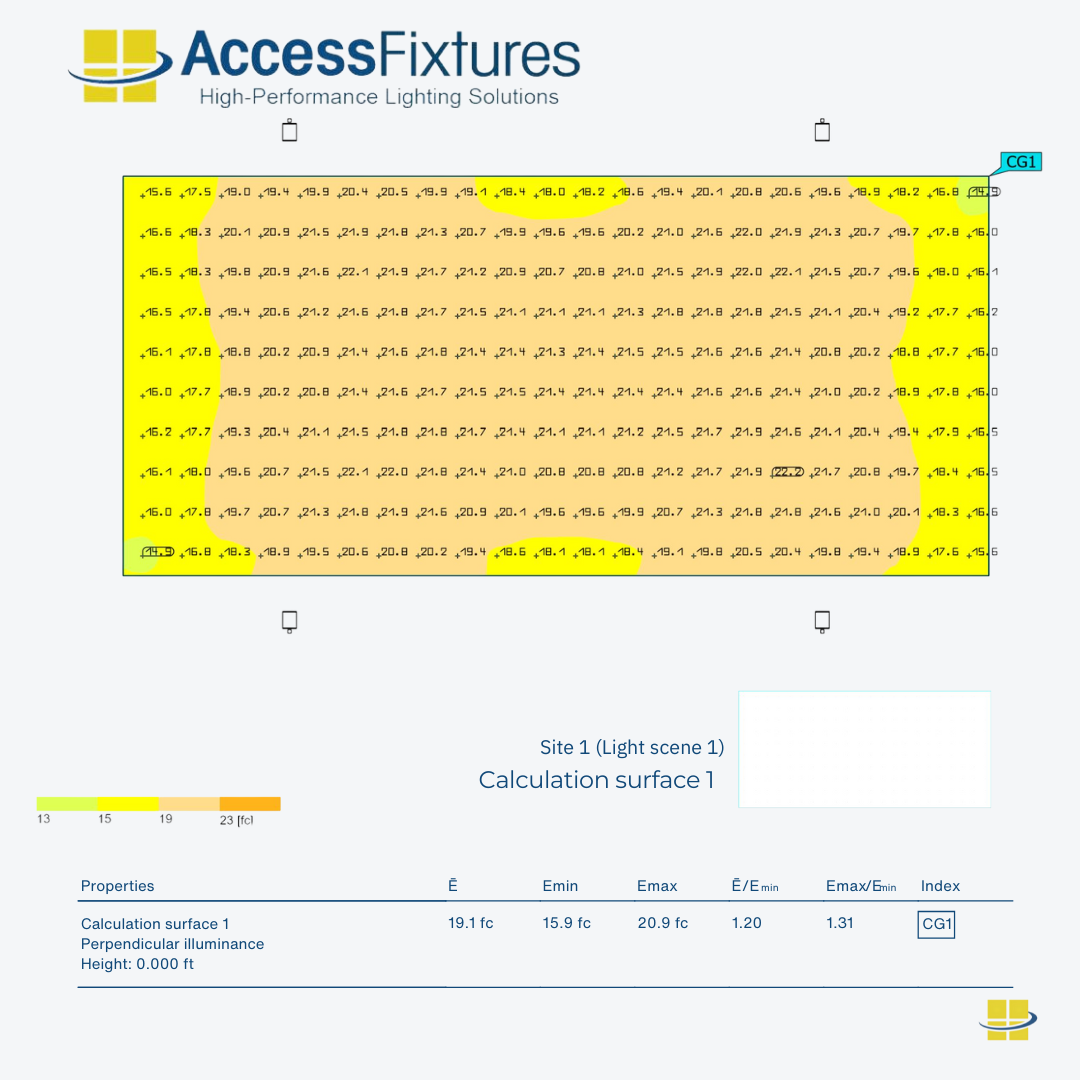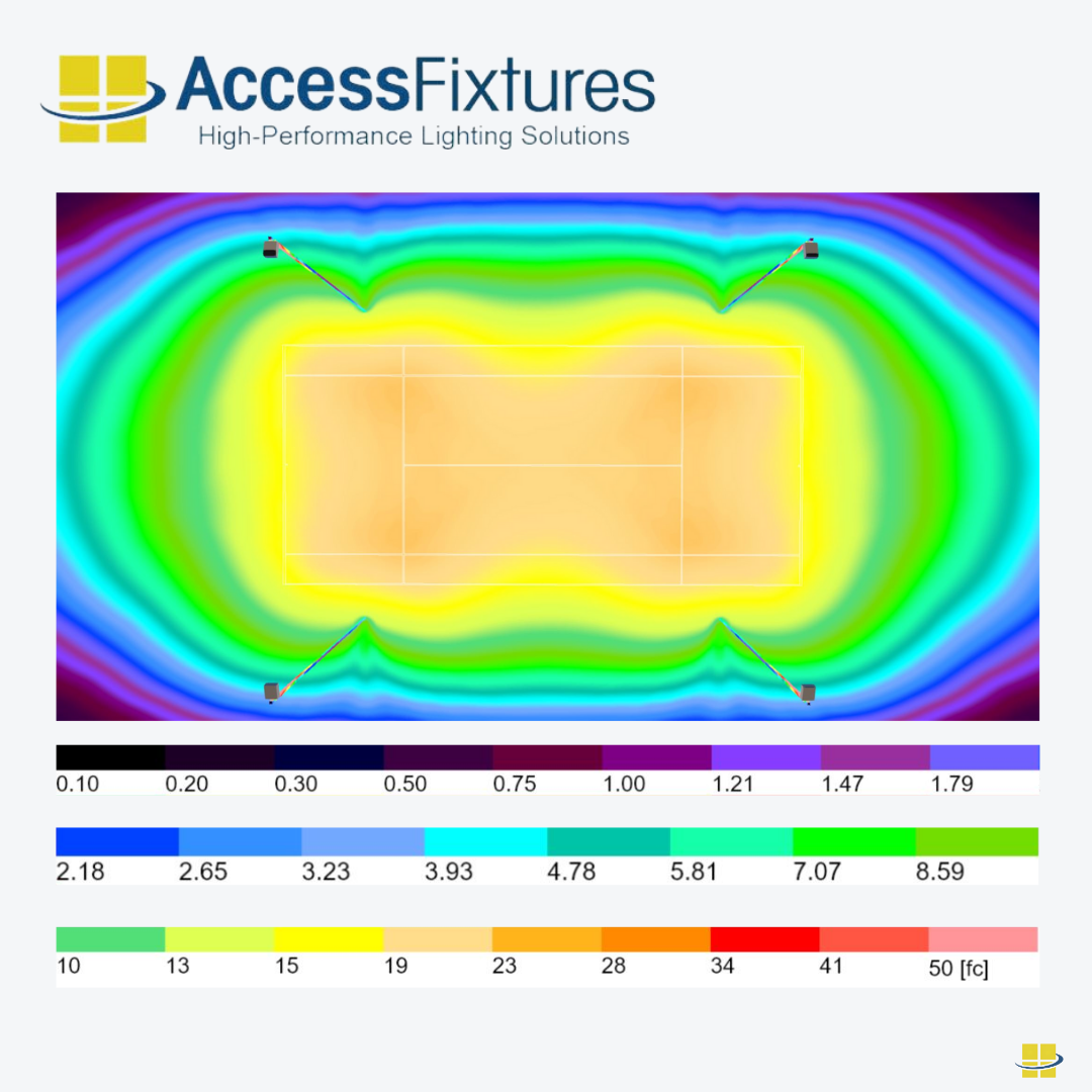 Proper Planning: Proper planning is essential for meeting tennis court lighting requirements. Access Fixtures lighting specialists can provide pre-engineered packages or custom photometric studies tailored to your court layout and level of play. Ensure your project delivers safe, uniform, and high-performance lighting. Contact a Lighting Specialist today.