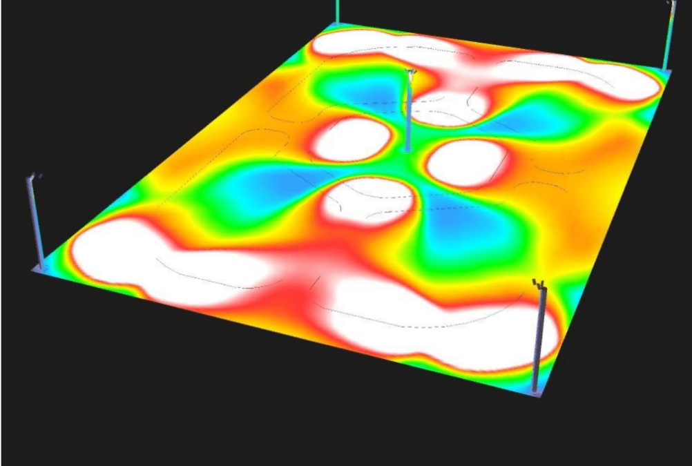A photometric analysis creates a detailed lighting plan tailored to the unique layout and dimensions of the playground, ensuring optimal visibility and compliance with lighting standards.