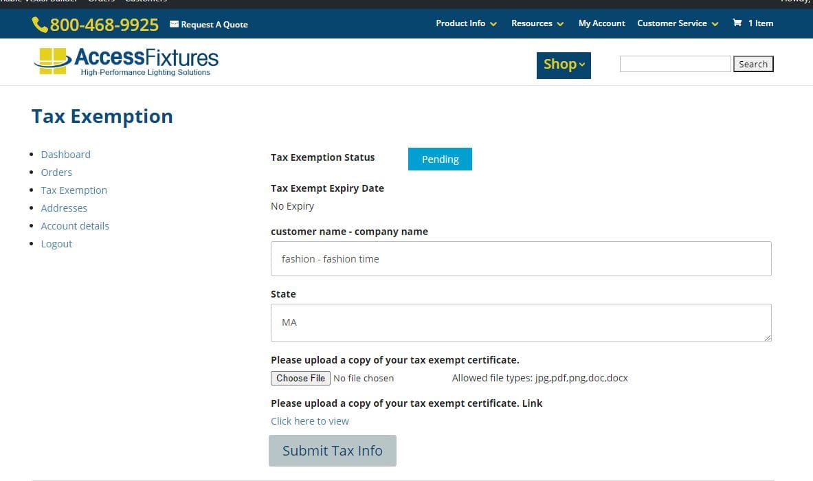 How to Submit Your Sales Tax Exemption certificate to Access Fixtures